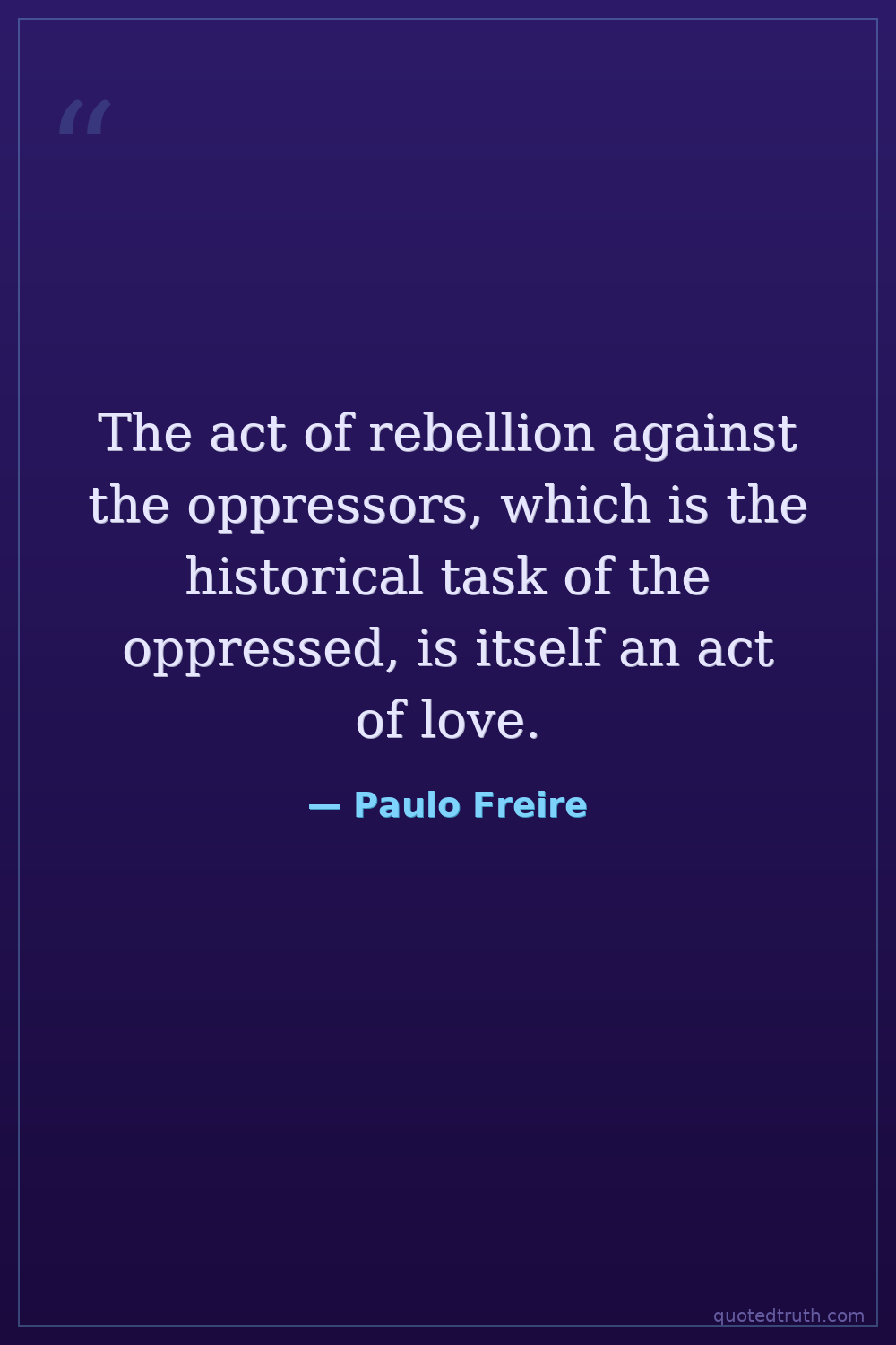 The act of rebellion against the oppressors, which is the historical task of the oppressed, is itself an act of love.