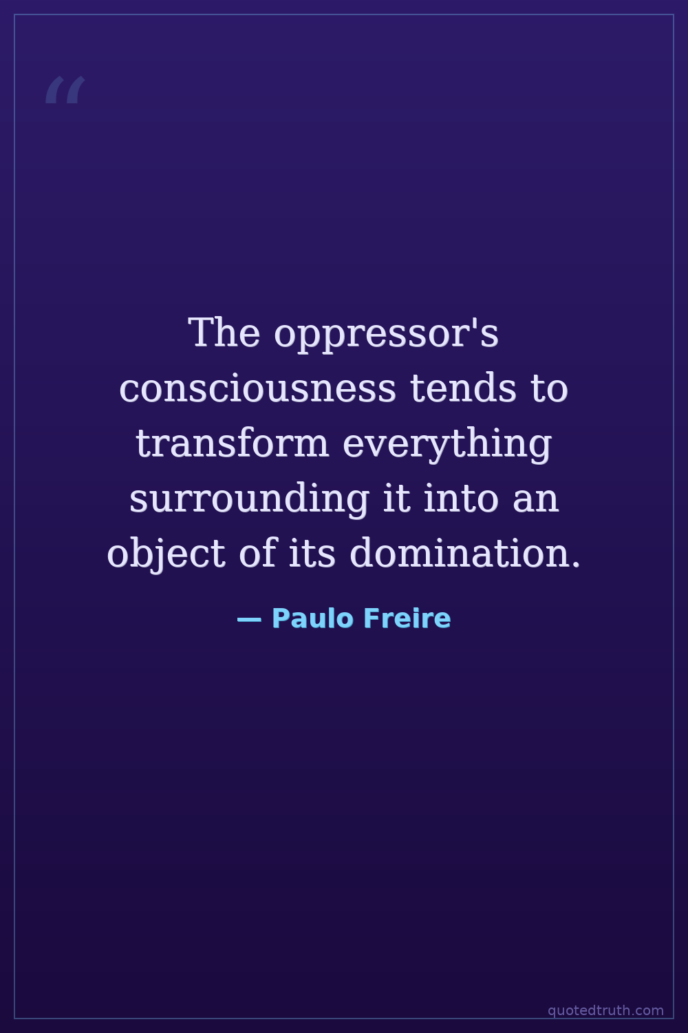 The oppressor's consciousness tends to transform everything surrounding it into an object of its domination.