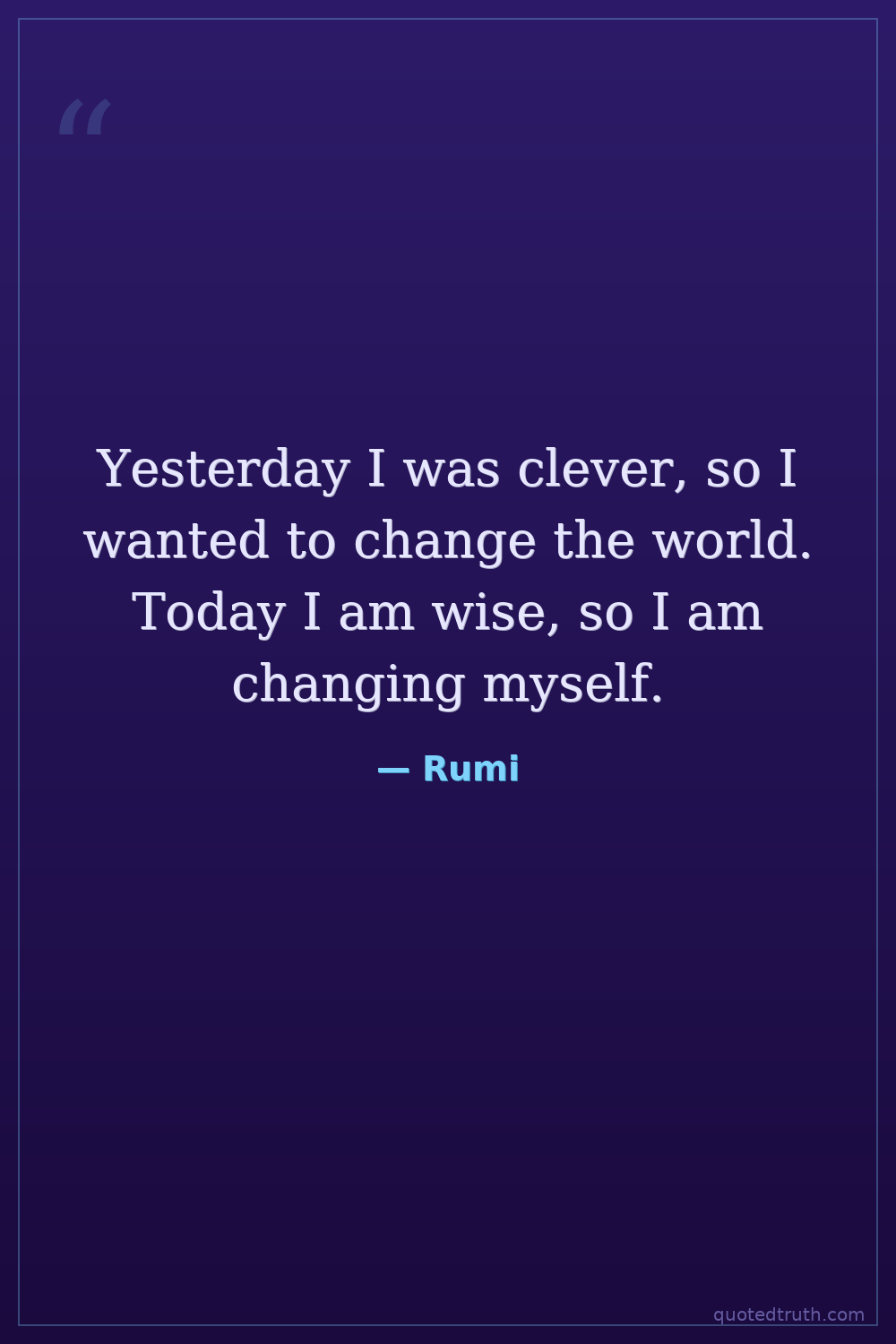 Yesterday I was clever, so I wanted to change the world. Today I am wise, so I am changing myself.