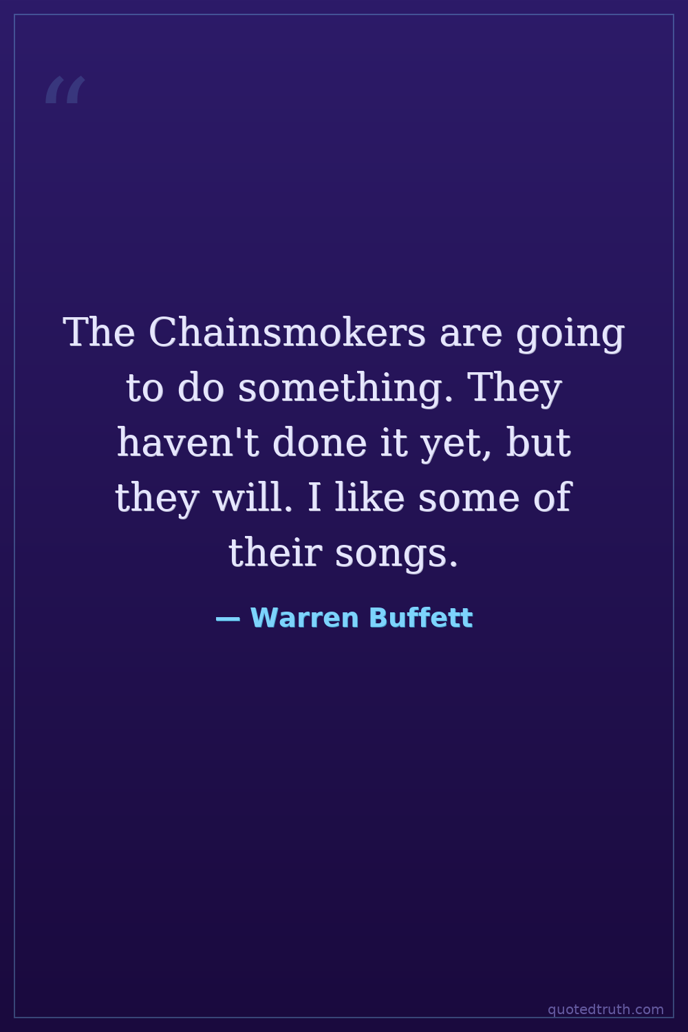 The Chainsmokers are going to do something. They haven't done it yet, but they will. I like some of their songs.