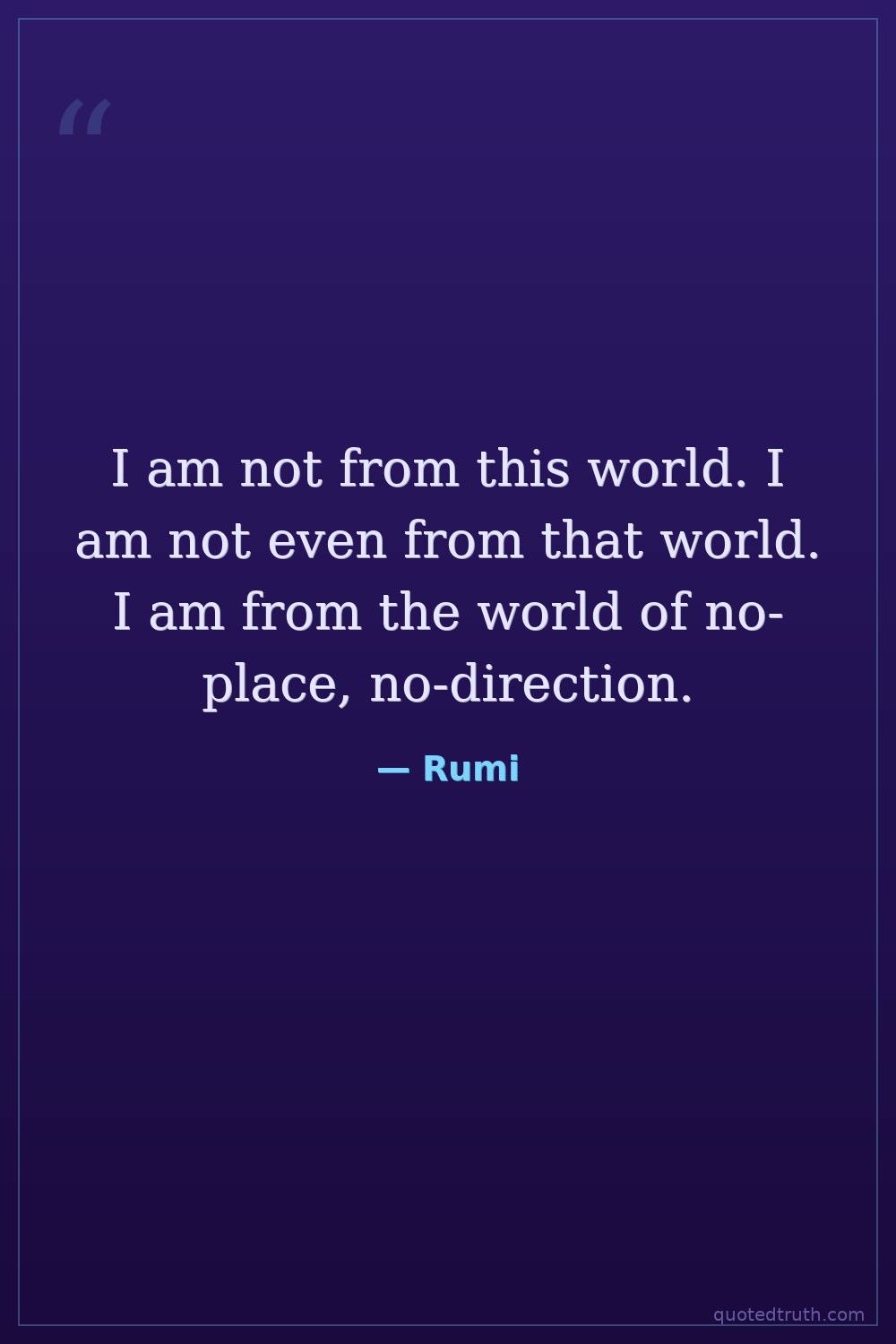 I am not from this world. I am not even from that world. I am from the world of no-place, no-direction.