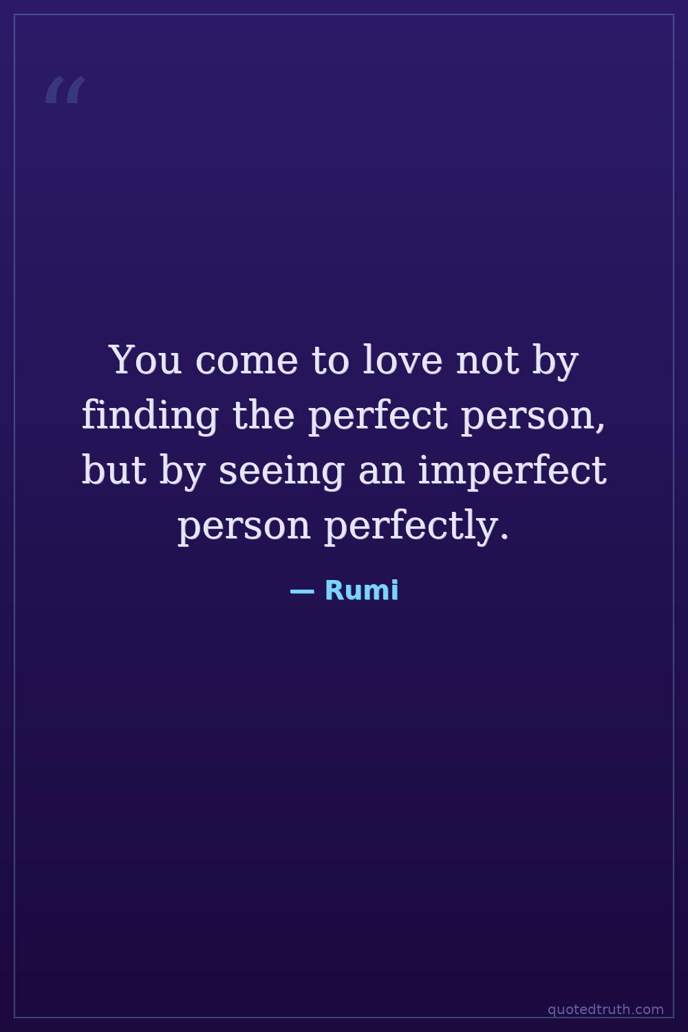 You come to love not by finding the perfect person, but by seeing an imperfect person perfectly.