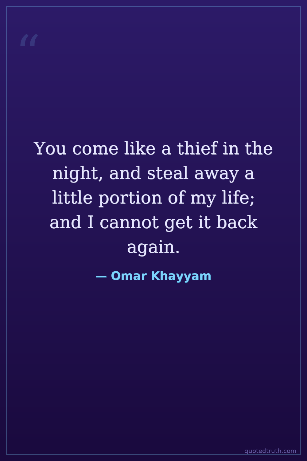 You come like a thief in the night, and steal away a little portion of my life; and I cannot get it back again.