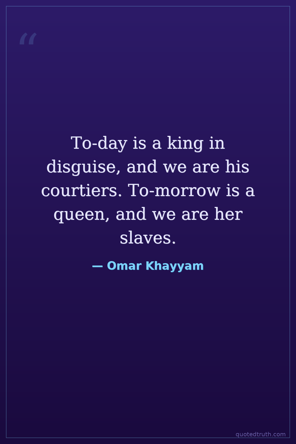 To-day is a king in disguise, and we are his courtiers. To-morrow is a queen, and we are her slaves.