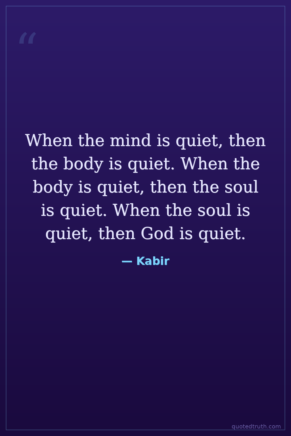 When the mind is quiet, then the body is quiet. When the body is quiet, then the soul is quiet. When the soul is quiet, then God is quiet.