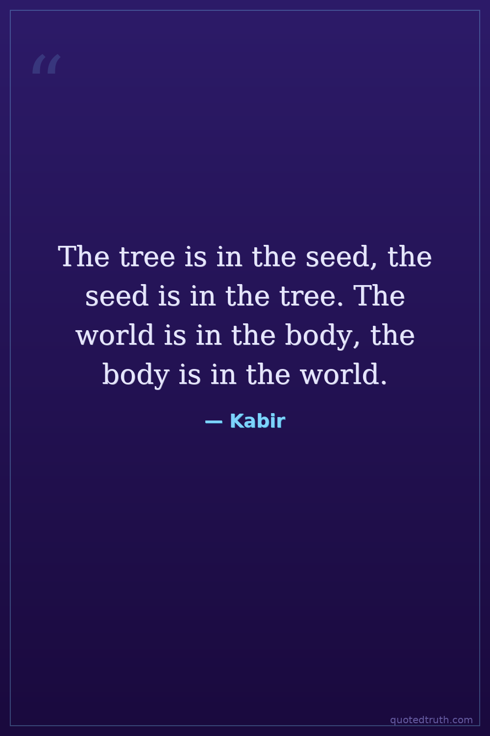 The tree is in the seed, the seed is in the tree. The world is in the body, the body is in the world.