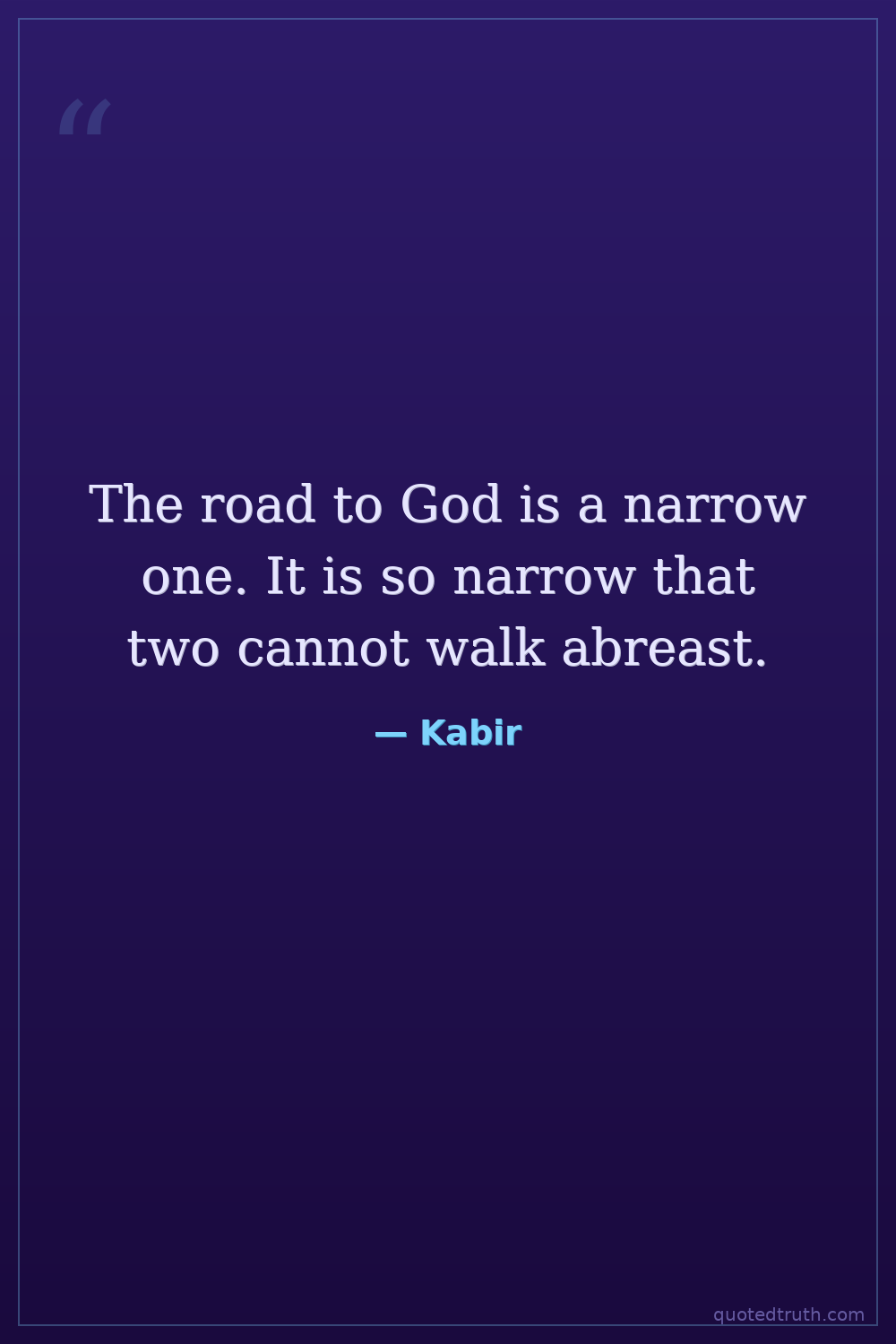 The road to God is a narrow one. It is so narrow that two cannot walk abreast.