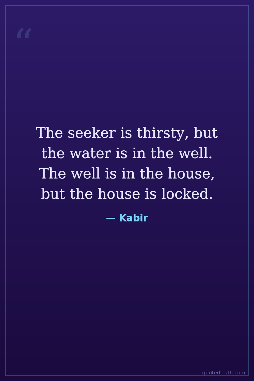 The seeker is thirsty, but the water is in the well. The well is in the house, but the house is locked.