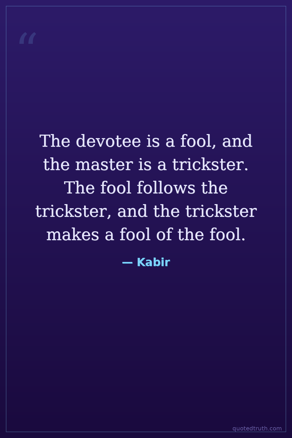 The devotee is a fool, and the master is a trickster. The fool follows the trickster, and the trickster makes a fool of the fool.
