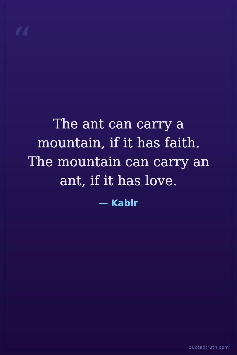 The ant can carry a mountain, if it has faith. The mountain can carry an ant, if it has love.