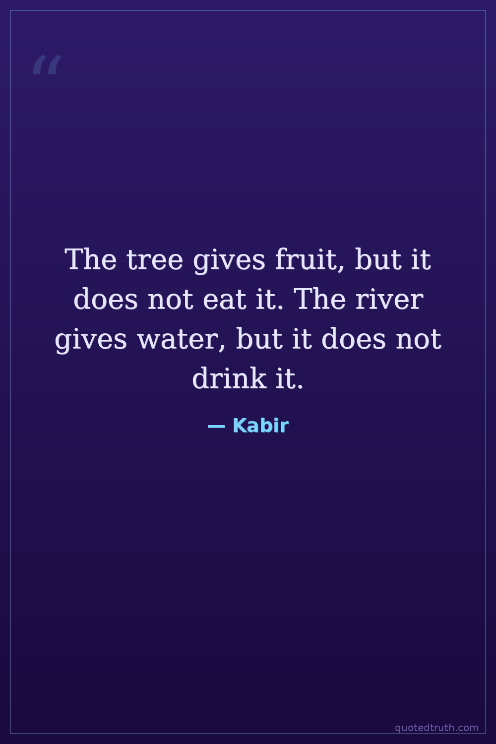 The tree gives fruit, but it does not eat it. The river gives water, but it does not drink it.