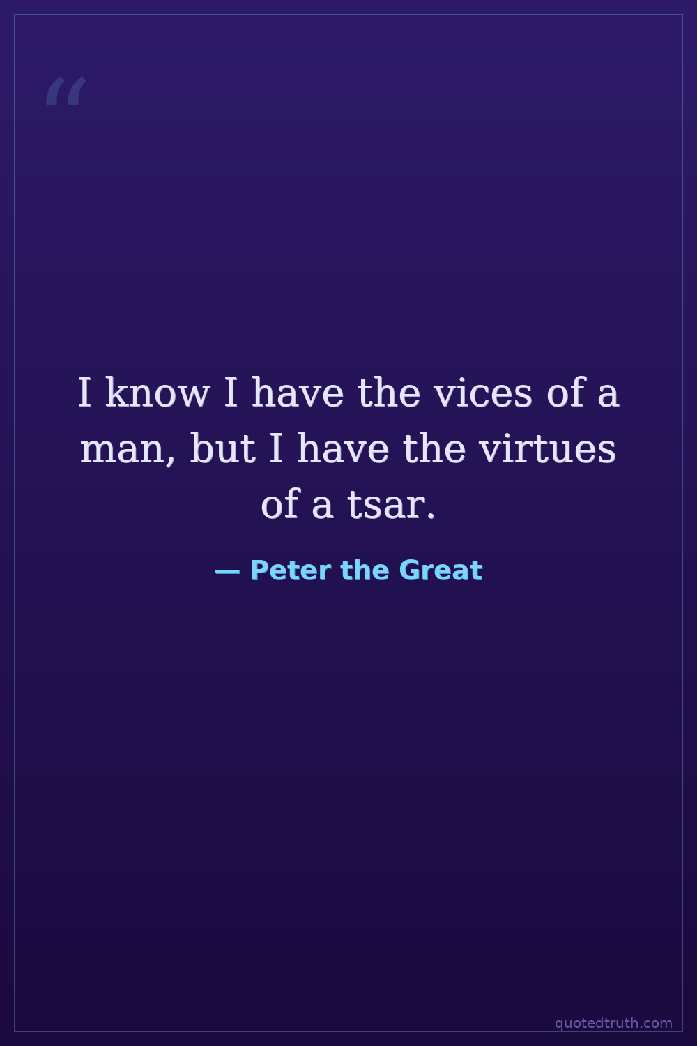 I know I have the vices of a man, but I have the virtues of a tsar.