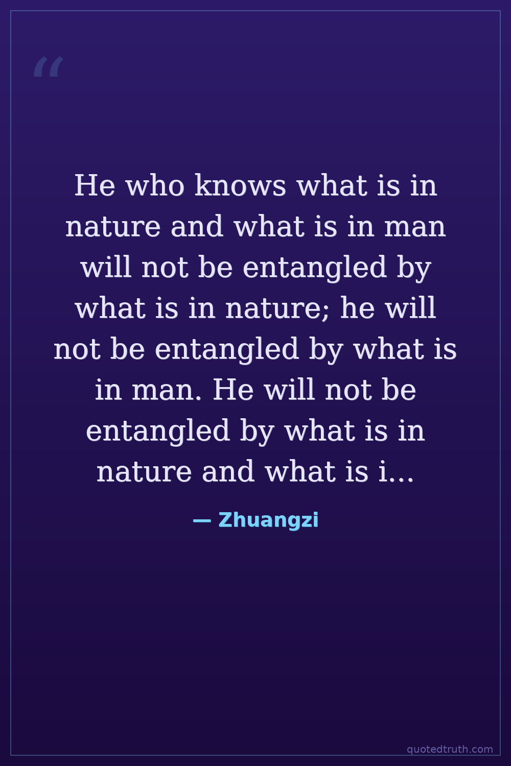 He who knows what is in nature and what is in man will not be entangled by what is in nature; he will not be entangled by what is in man. He will not be entangled by what is in nature and what is in man, so he will be able to roam freely in the world.