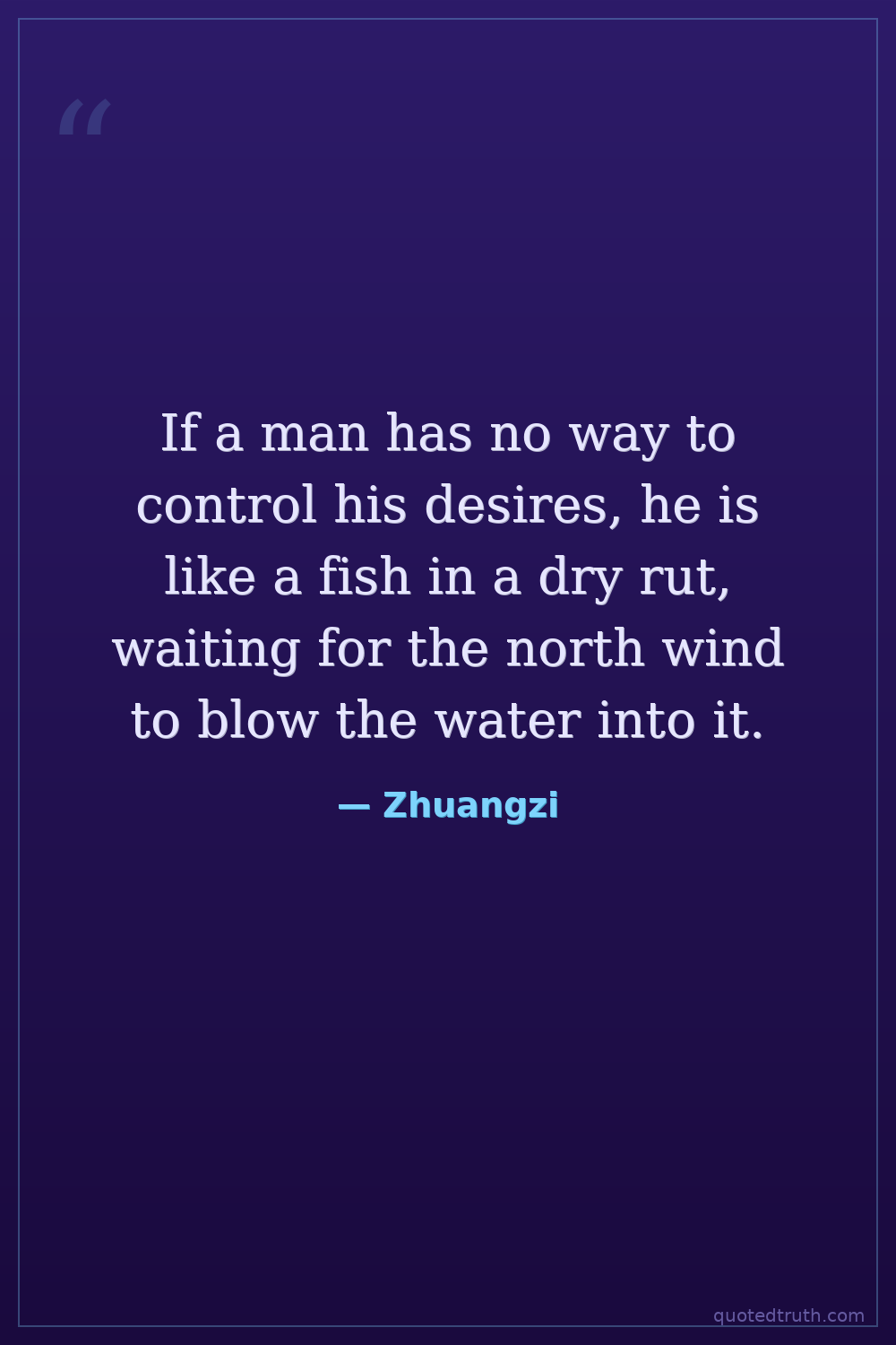 If a man has no way to control his desires, he is like a fish in a dry rut, waiting for the north wind to blow the water into it.
