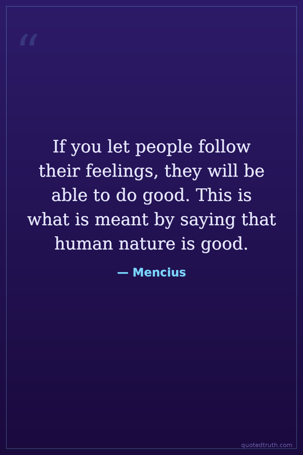 If you let people follow their feelings, they will be able to do good. This is what is meant by saying that human nature is good.