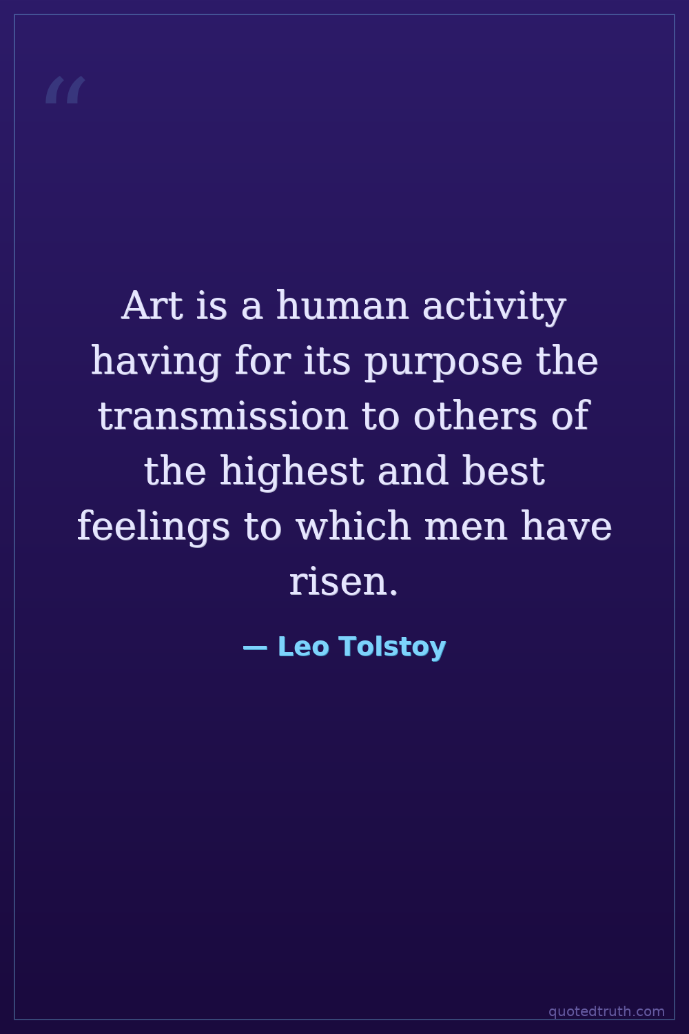 Art is a human activity having for its purpose the transmission to others of the highest and best feelings to which men have risen.
