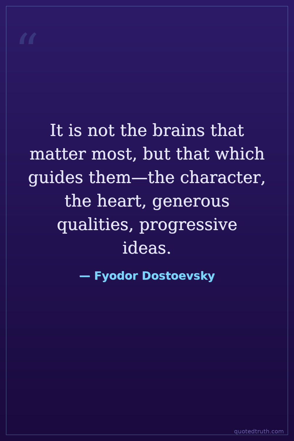 It is not the brains that matter most, but that which guides them—the character, the heart, generous qualities, progressive ideas.