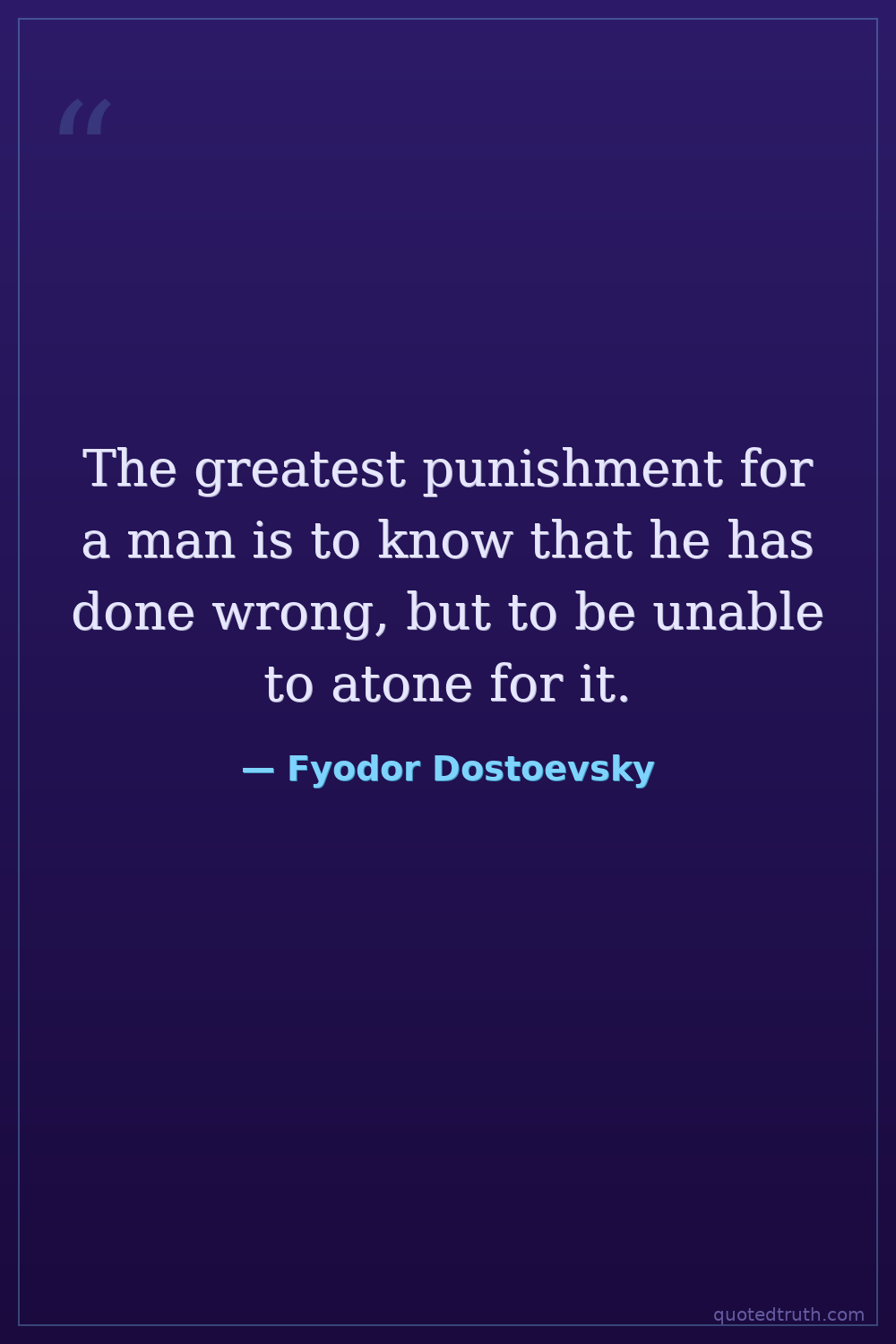 The greatest punishment for a man is to know that he has done wrong, but to be unable to atone for it.