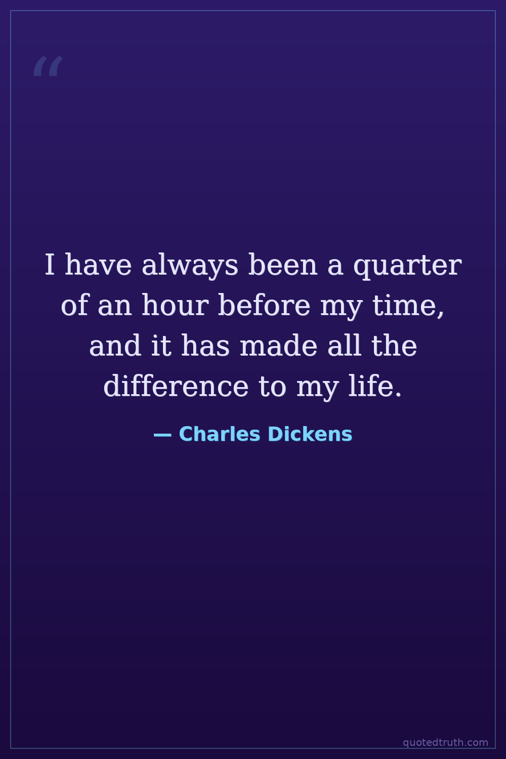 I have always been a quarter of an hour before my time, and it has made all the difference to my life.