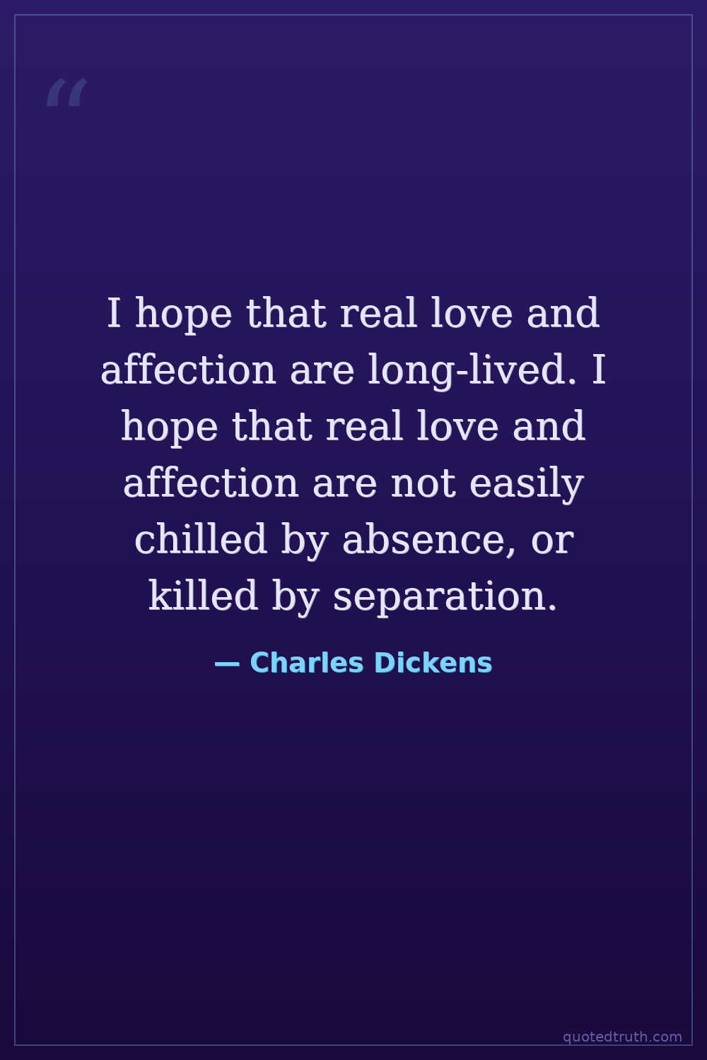 I hope that real love and affection are long-lived. I hope that real love and affection are not easily chilled by absence, or killed by separation.
