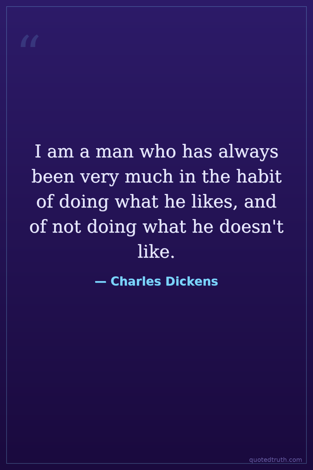 I am a man who has always been very much in the habit of doing what he likes, and of not doing what he doesn't like.