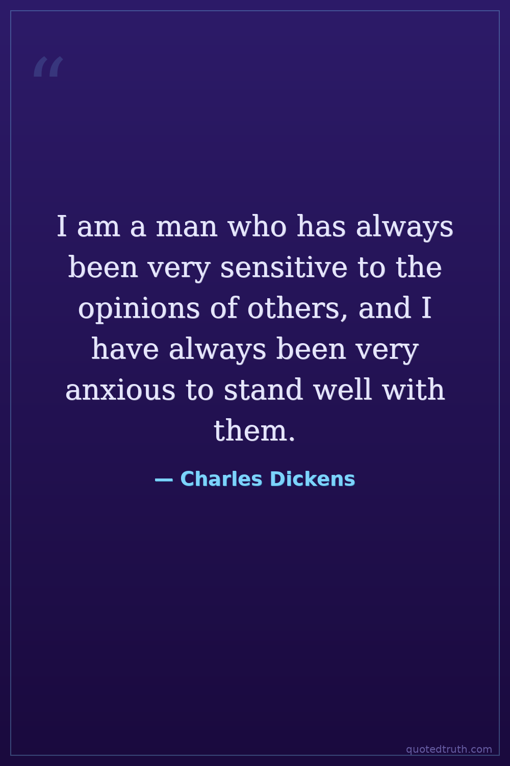 I am a man who has always been very sensitive to the opinions of others, and I have always been very anxious to stand well with them.