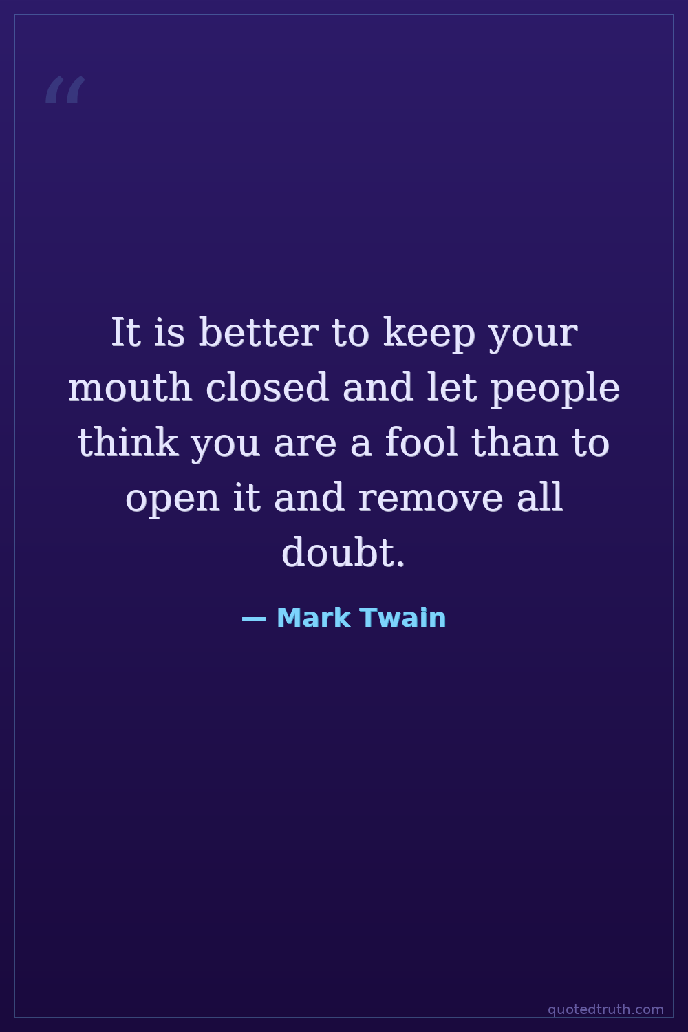 It is better to keep your mouth closed and let people think you are a fool than to open it and remove all doubt.