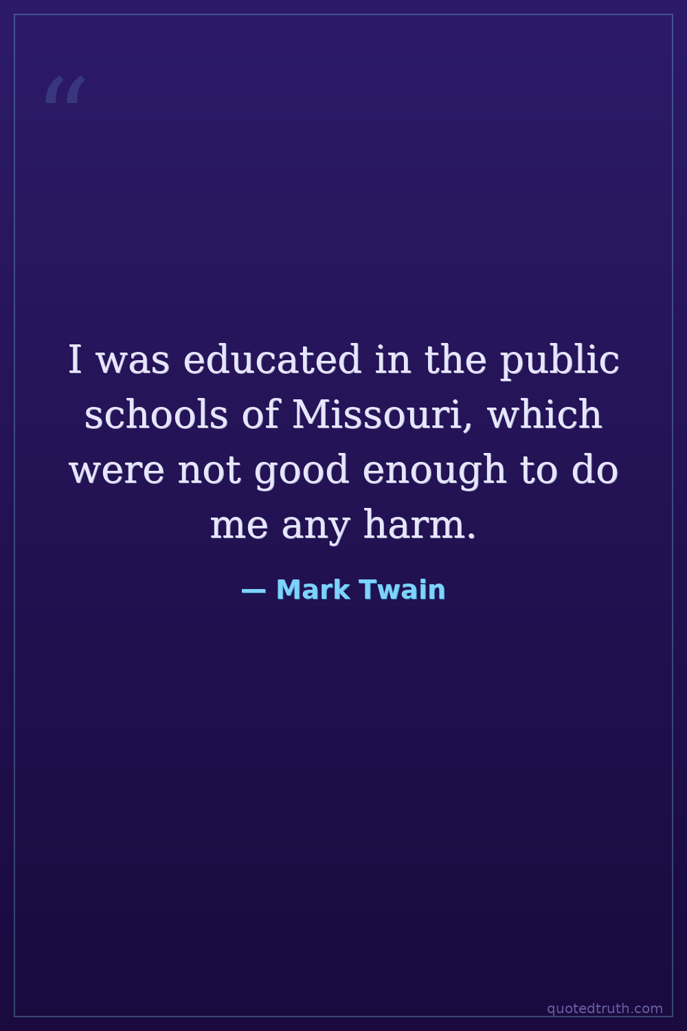 I was educated in the public schools of Missouri, which were not good enough to do me any harm.