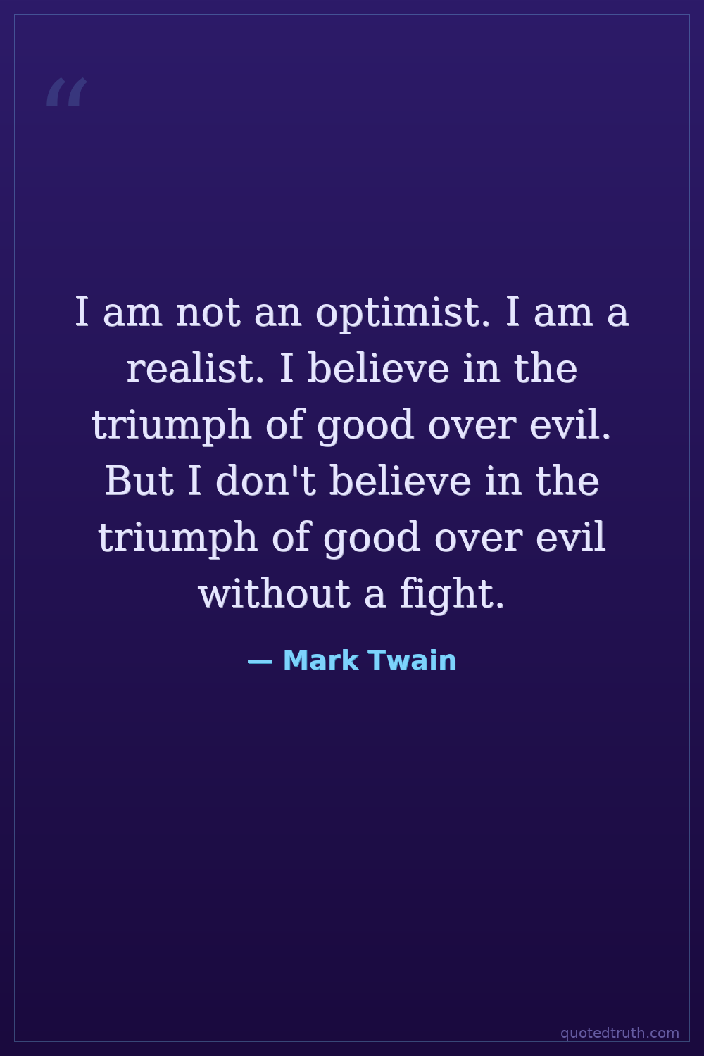 I am not an optimist. I am a realist. I believe in the triumph of good over evil. But I don't believe in the triumph of good over evil without a fight.