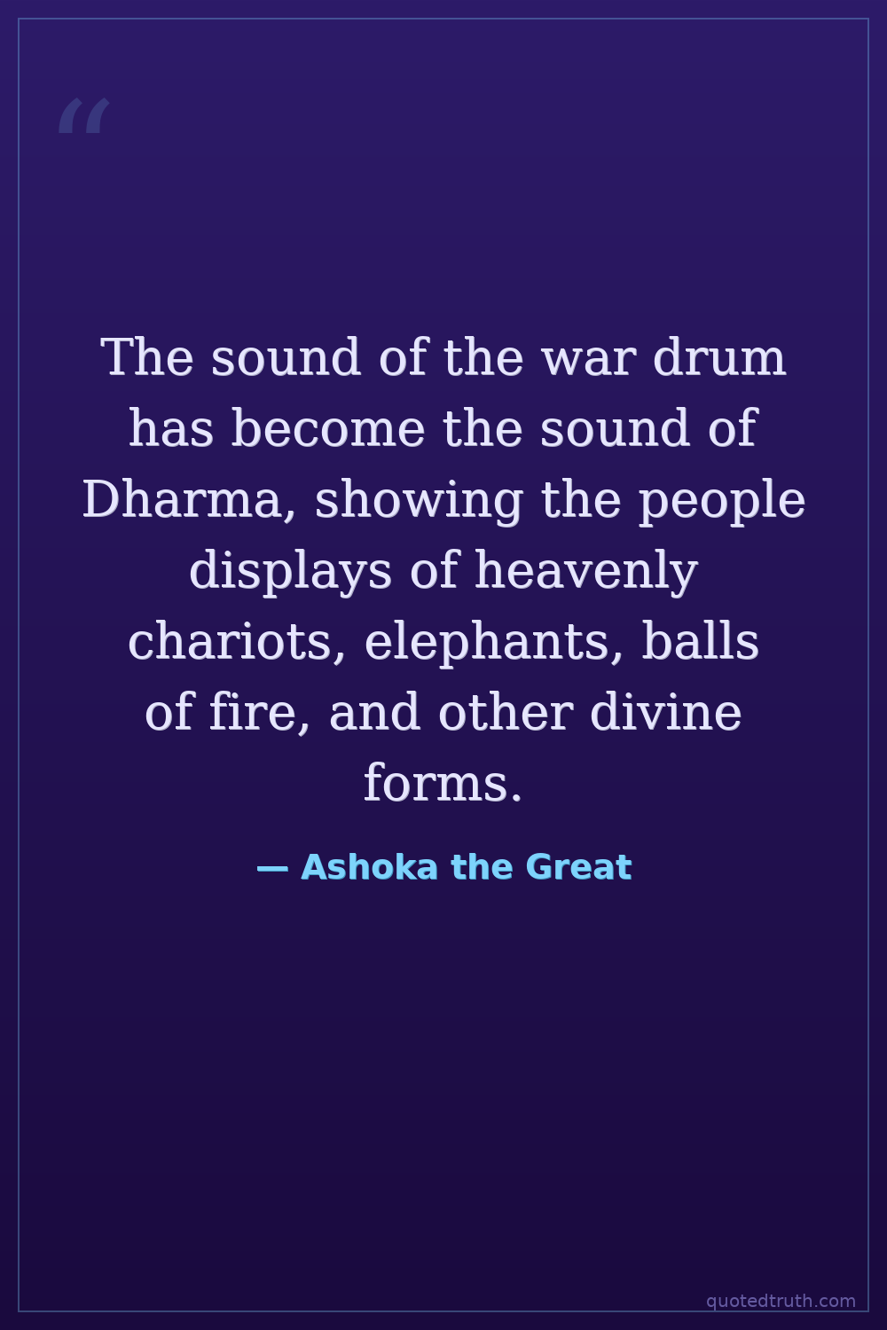 Controversial"The Beloved of the Gods, King Piyadasi, speaks thus: The sound of the drum has become the sound of Dhamma."