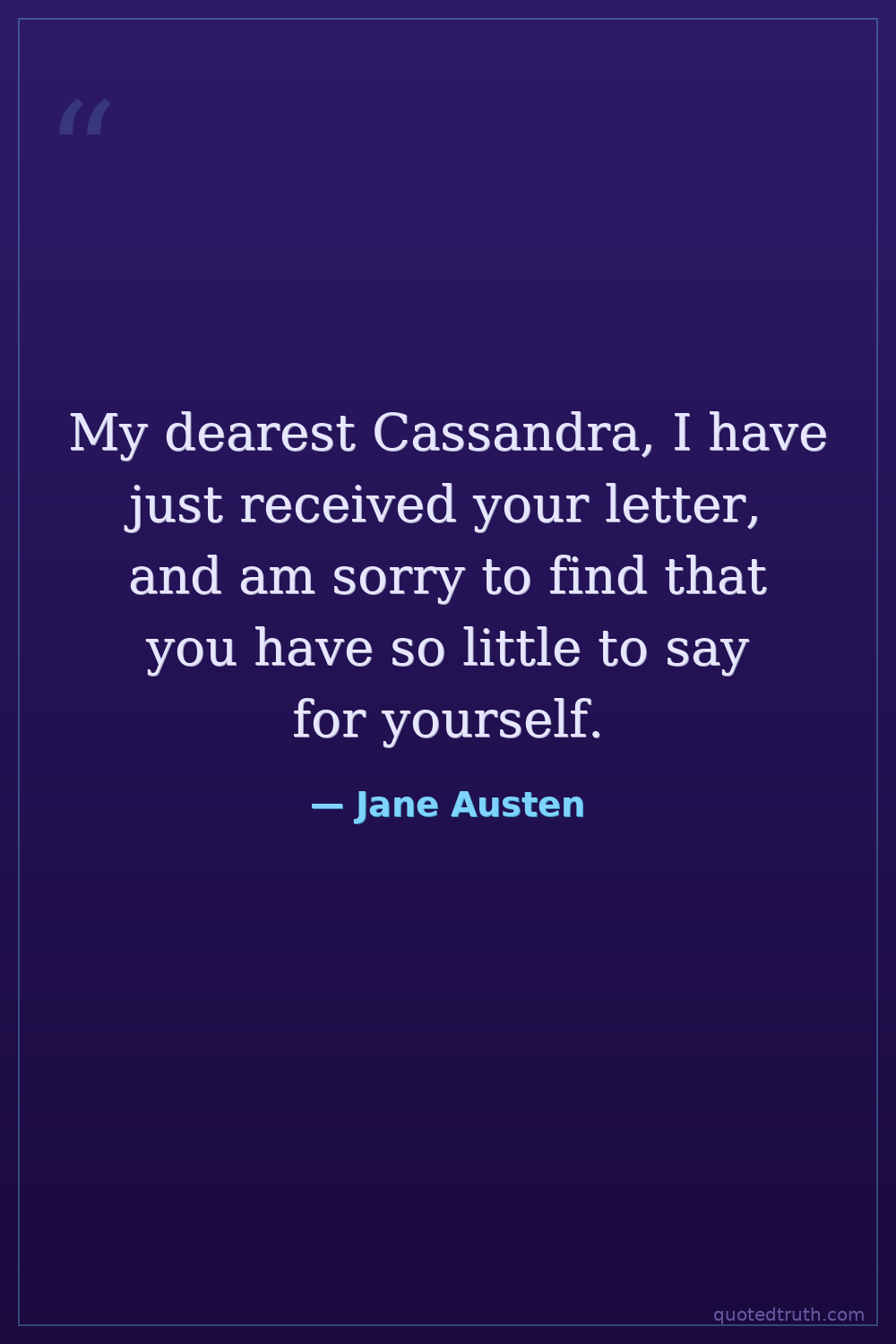 My dearest Cassandra, I have just received your letter, and am sorry to find that you have so little to say for yourself.
