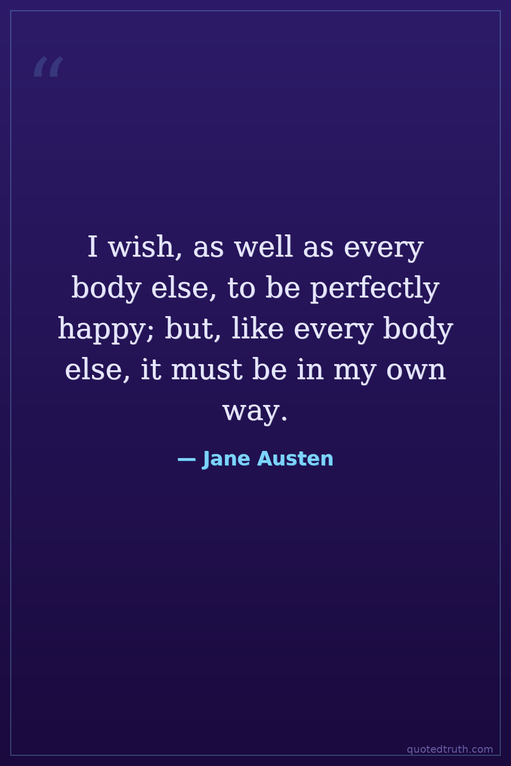 I wish, as well as every body else, to be perfectly happy; but, like every body else, it must be in my own way.