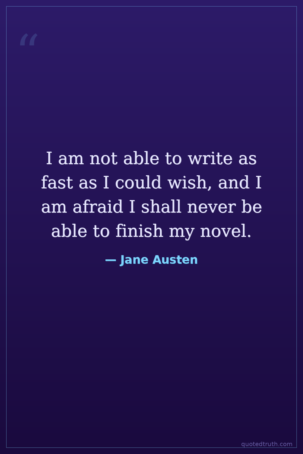 I am not able to write as fast as I could wish, and I am afraid I shall never be able to finish my novel.