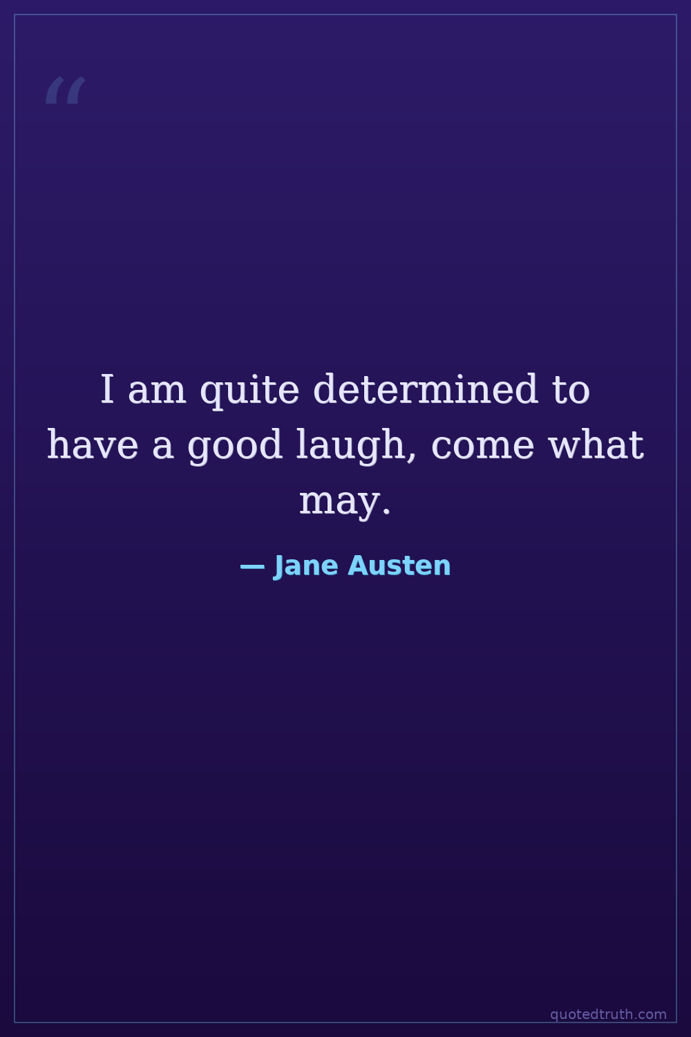 I am quite determined to have a good laugh, come what may.