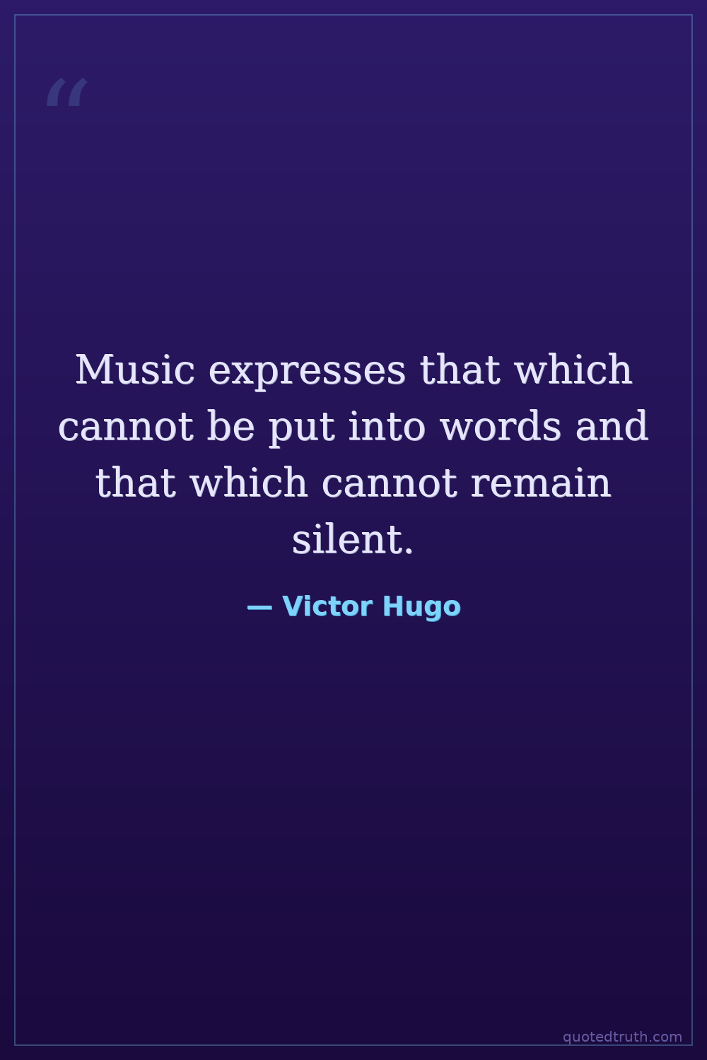 Music expresses that which cannot be put into words and that which cannot remain silent.