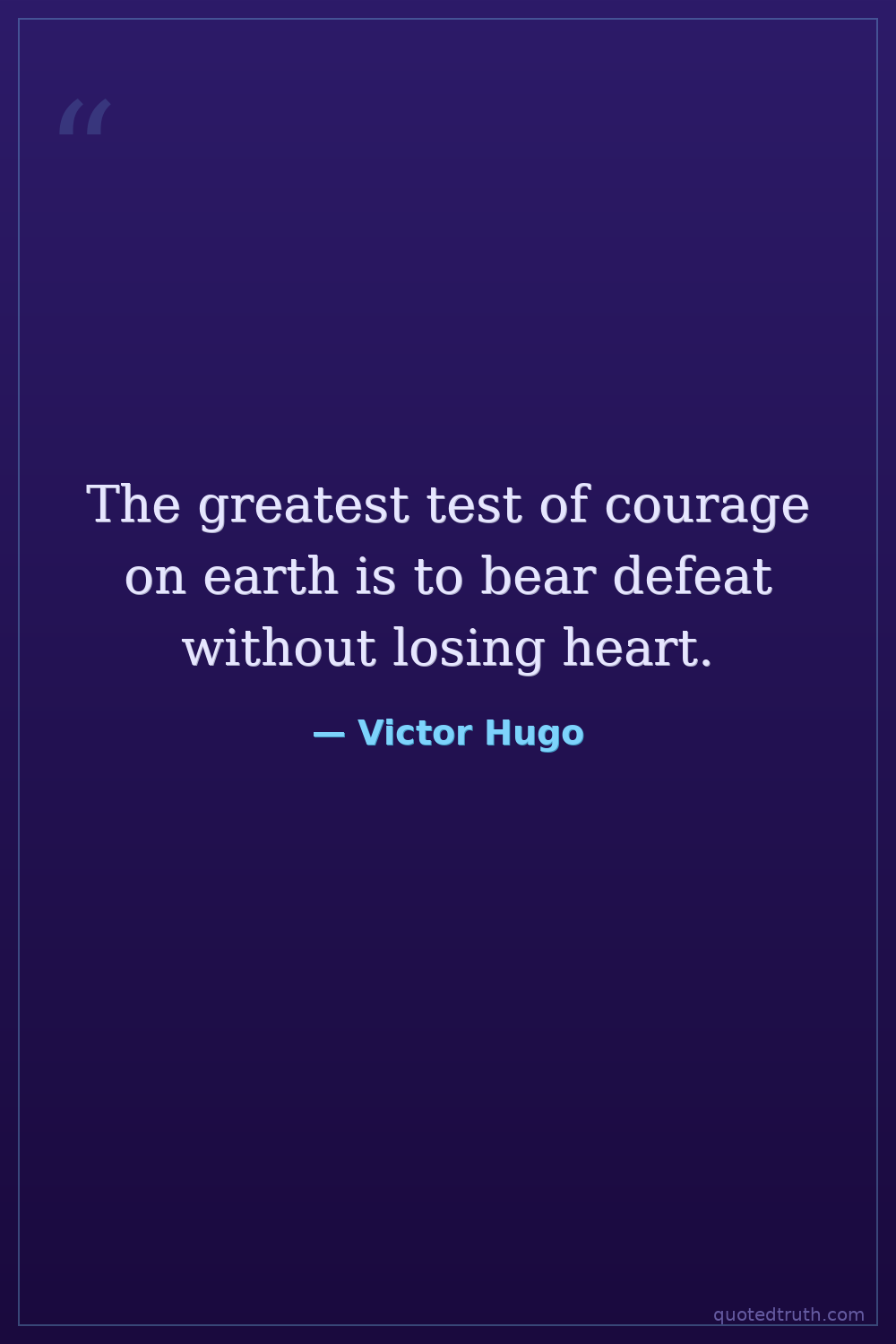 The greatest test of courage on earth is to bear defeat without losing heart.