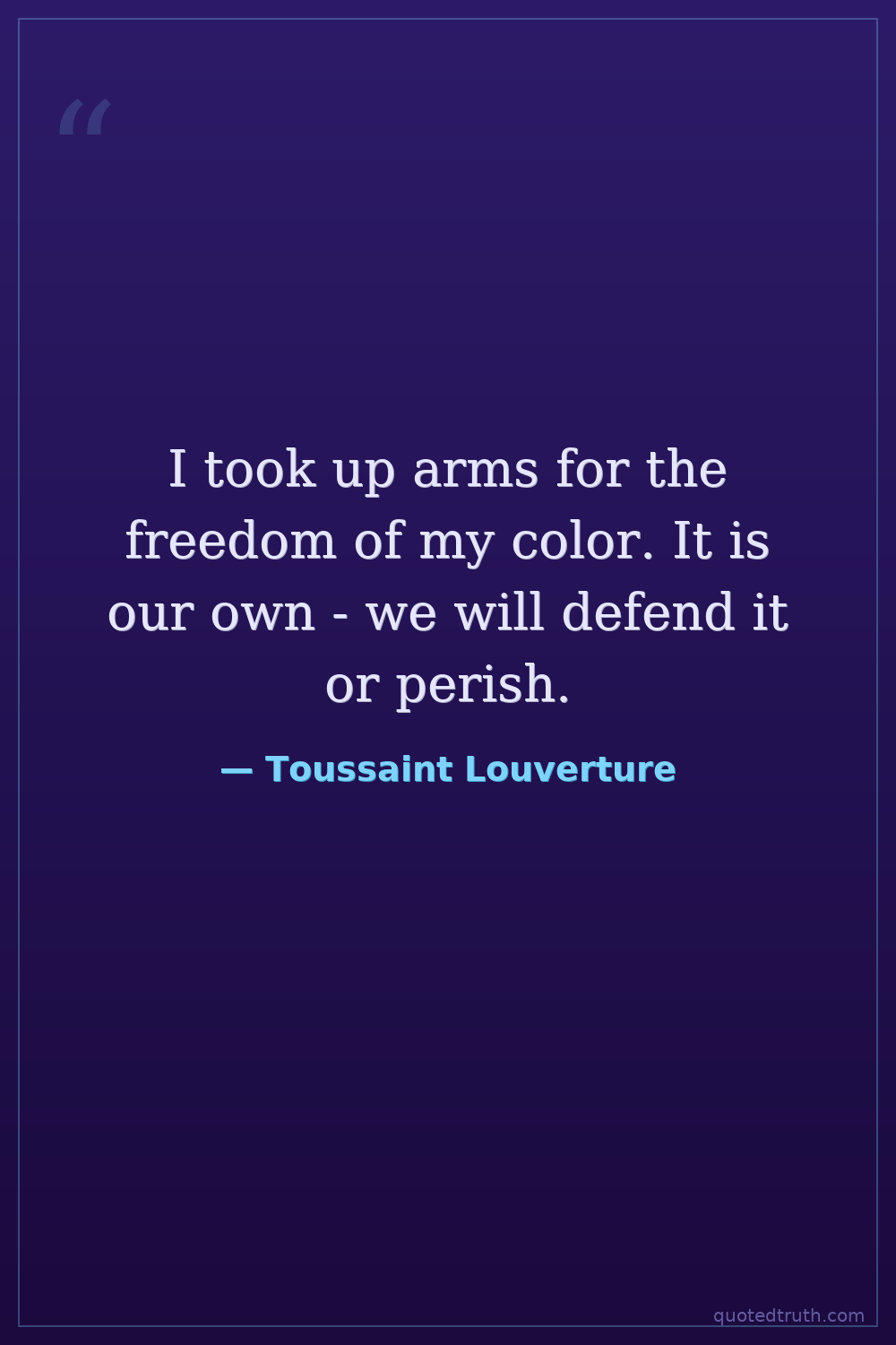 I took up arms for the freedom of my color. It is our own - we will defend it or perish.