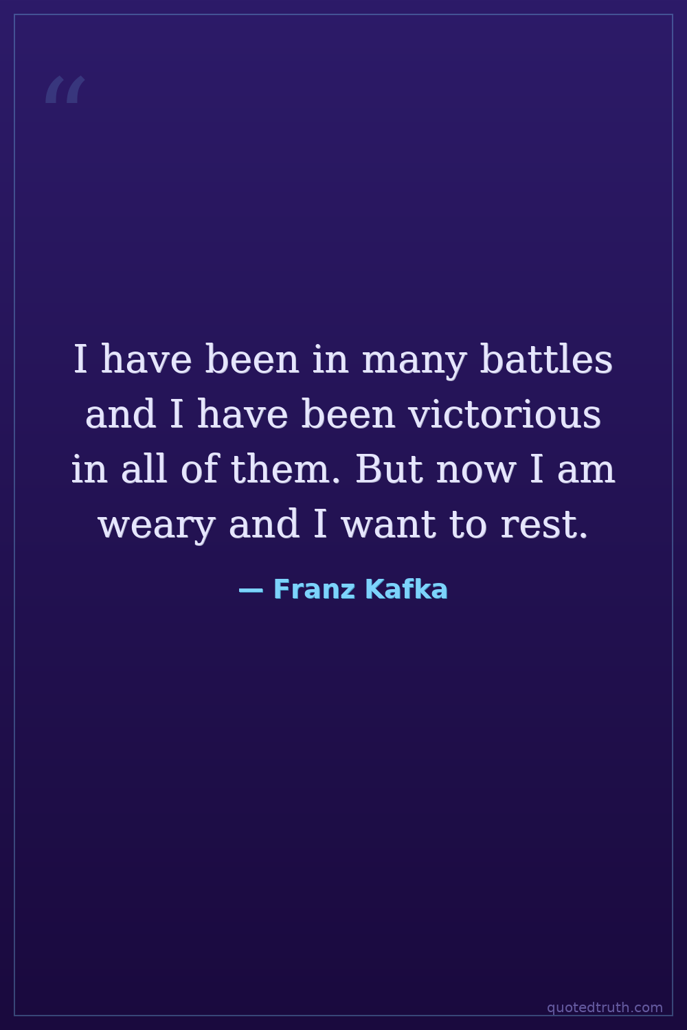 I have been in many battles and I have been victorious in all of them. But now I am weary and I want to rest.