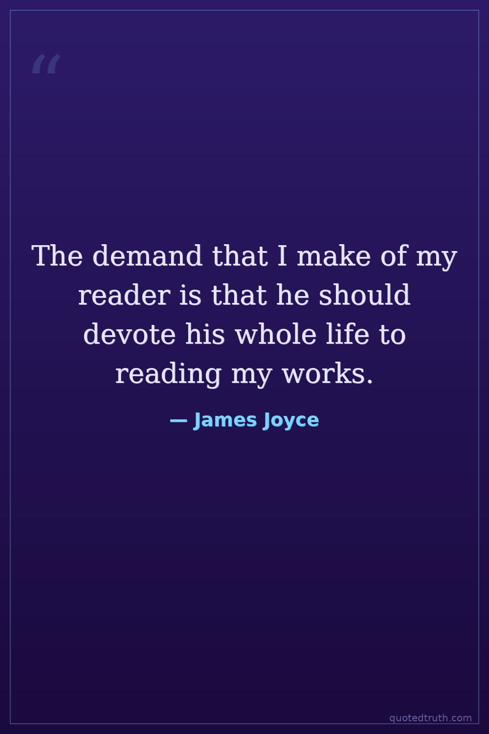 The demand that I make of my reader is that he should devote his whole life to reading my works.