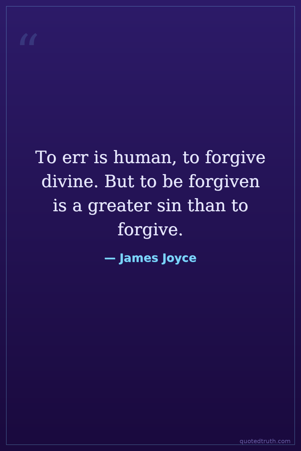 To err is human, to forgive divine. But to be forgiven is a greater sin than to forgive.