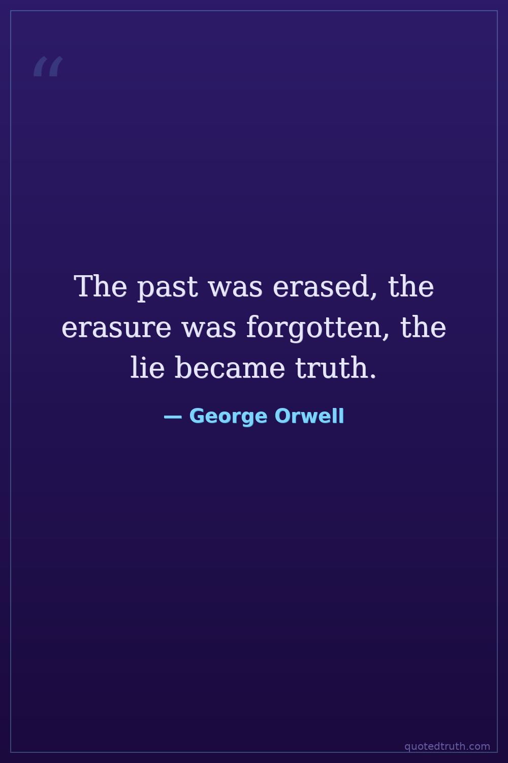 The past was erased, the erasure was forgotten, the lie became truth.