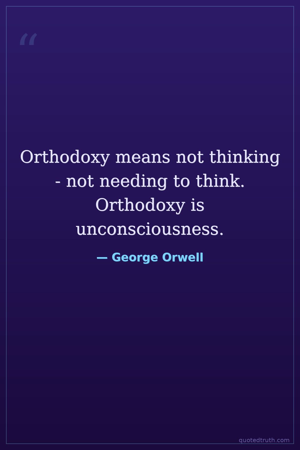 Orthodoxy means not thinking - not needing to think. Orthodoxy is unconsciousness.