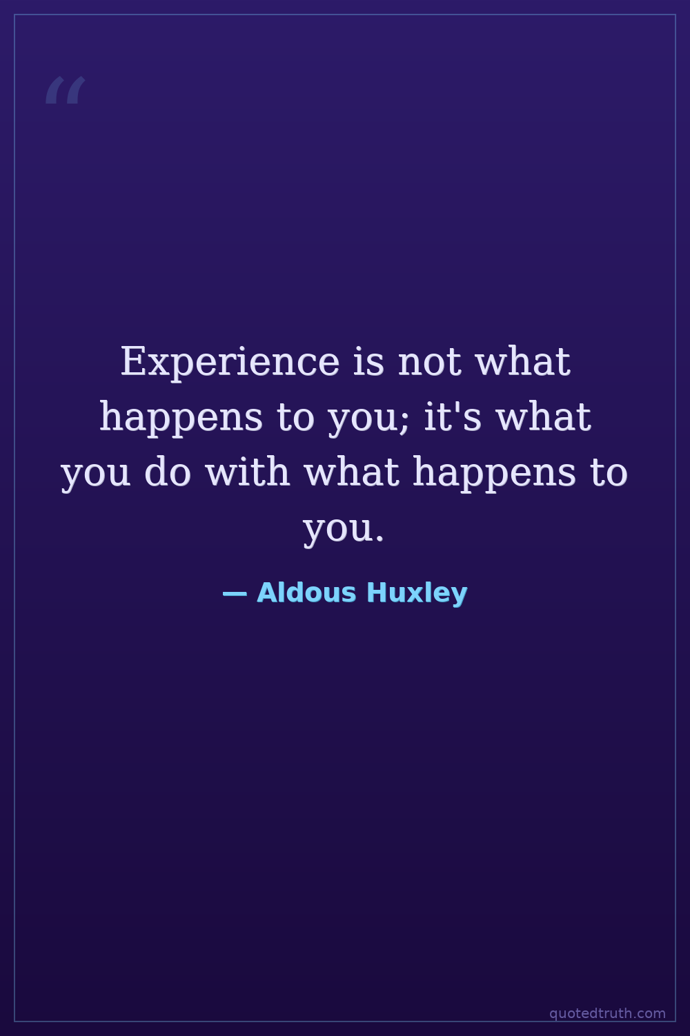 Experience is not what happens to you; it's what you do with what happens to you.