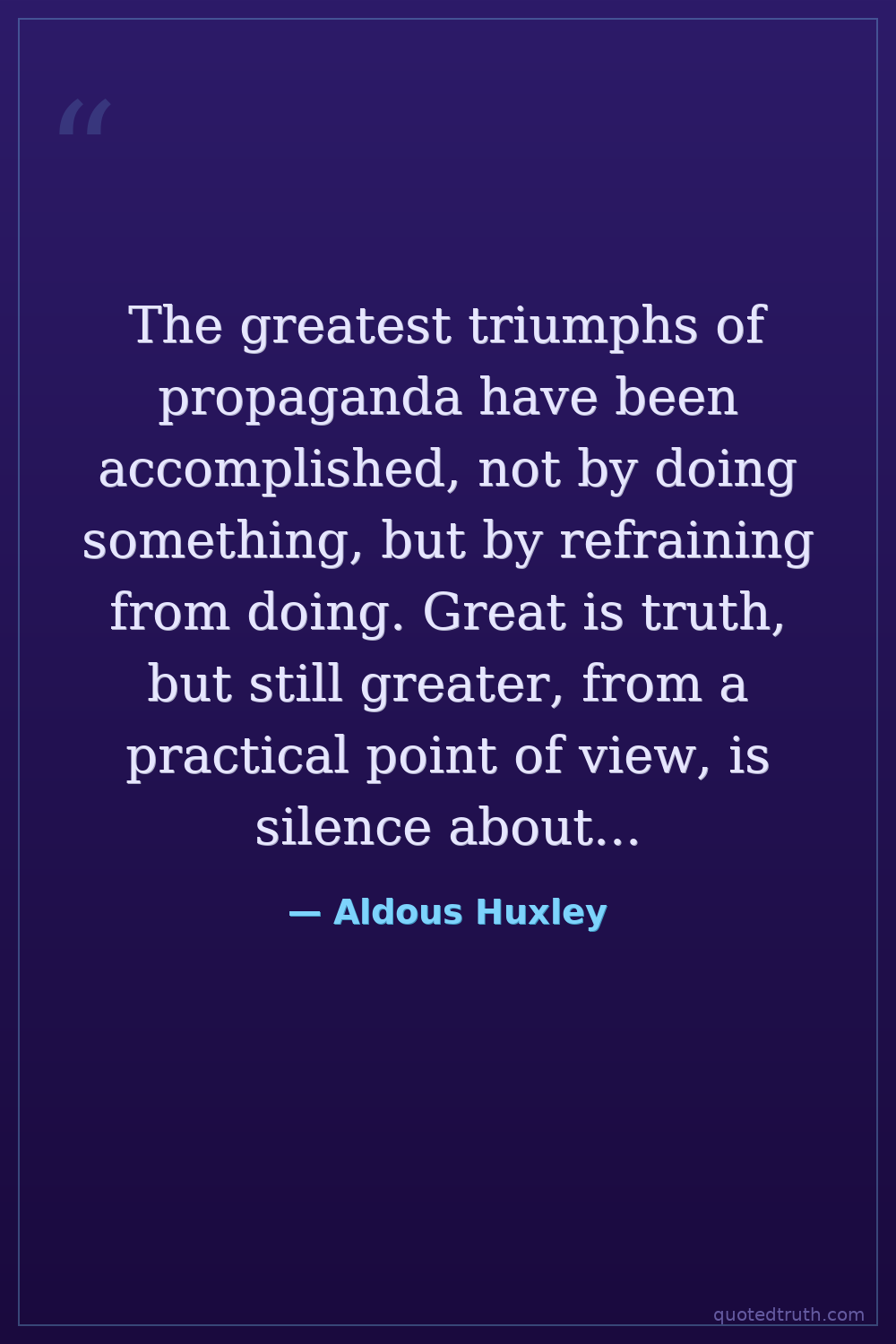 The greatest triumphs of propaganda have been accomplished, not by doing something, but by refraining from doing. Great is truth, but still greater, from a practical point of view, is silence about truth.