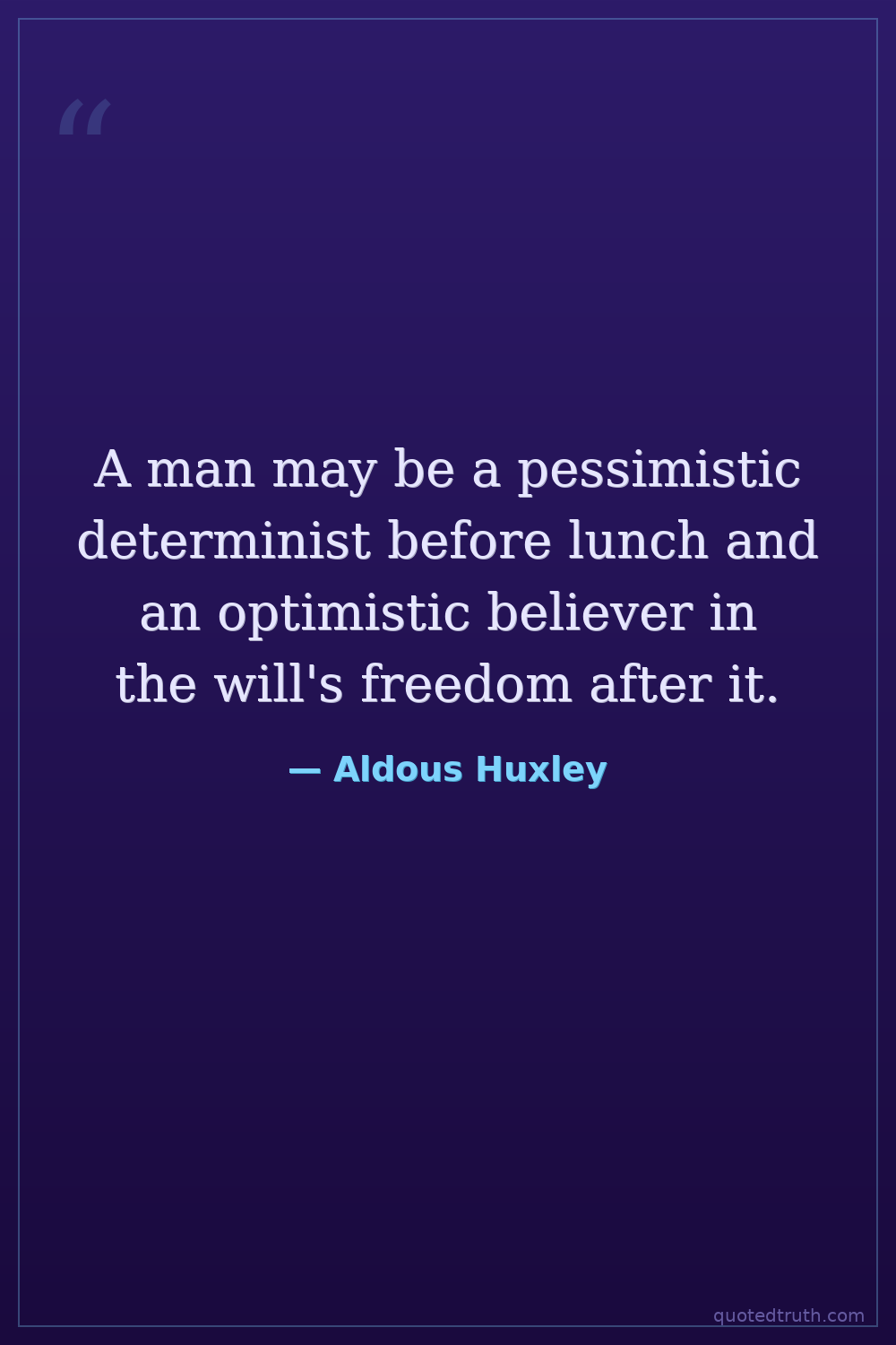 A man may be a pessimistic determinist before lunch and an optimistic believer in the will's freedom after it.