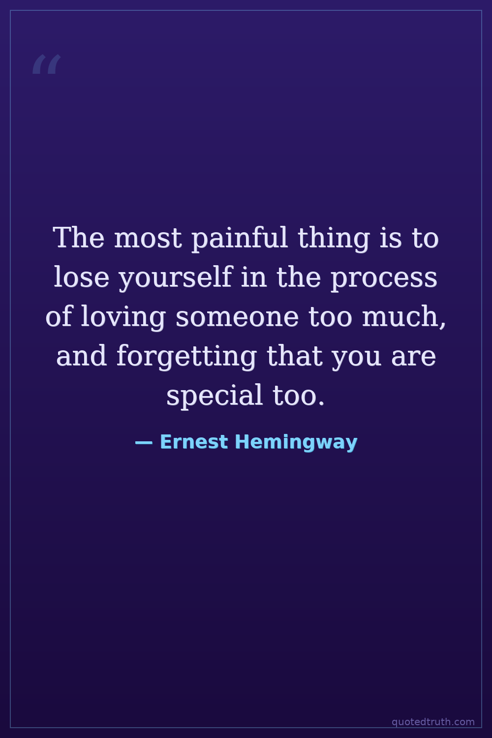 The most painful thing is to lose yourself in the process of loving someone too much, and forgetting that you are special too.