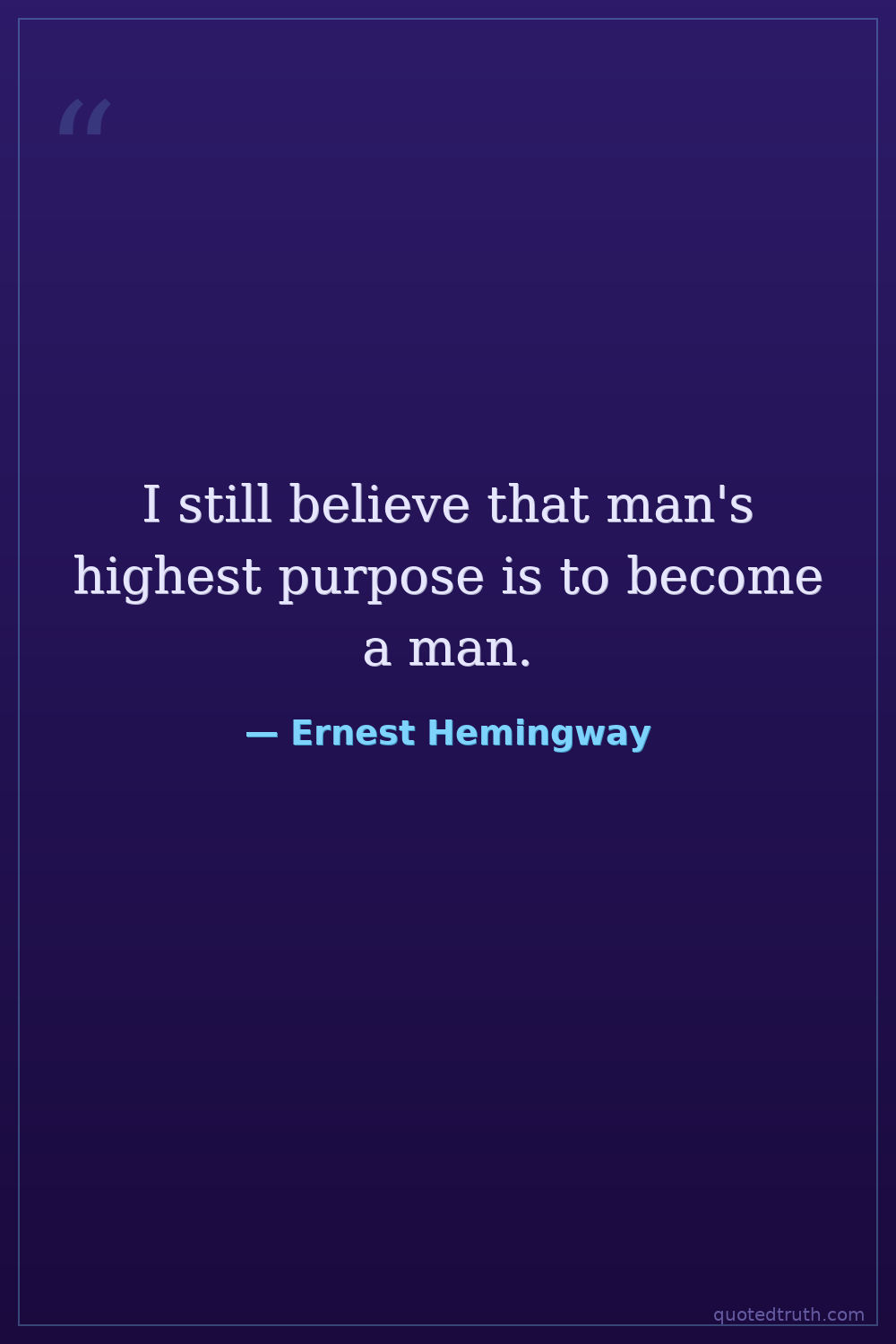 I still believe that man's highest purpose is to become a man.