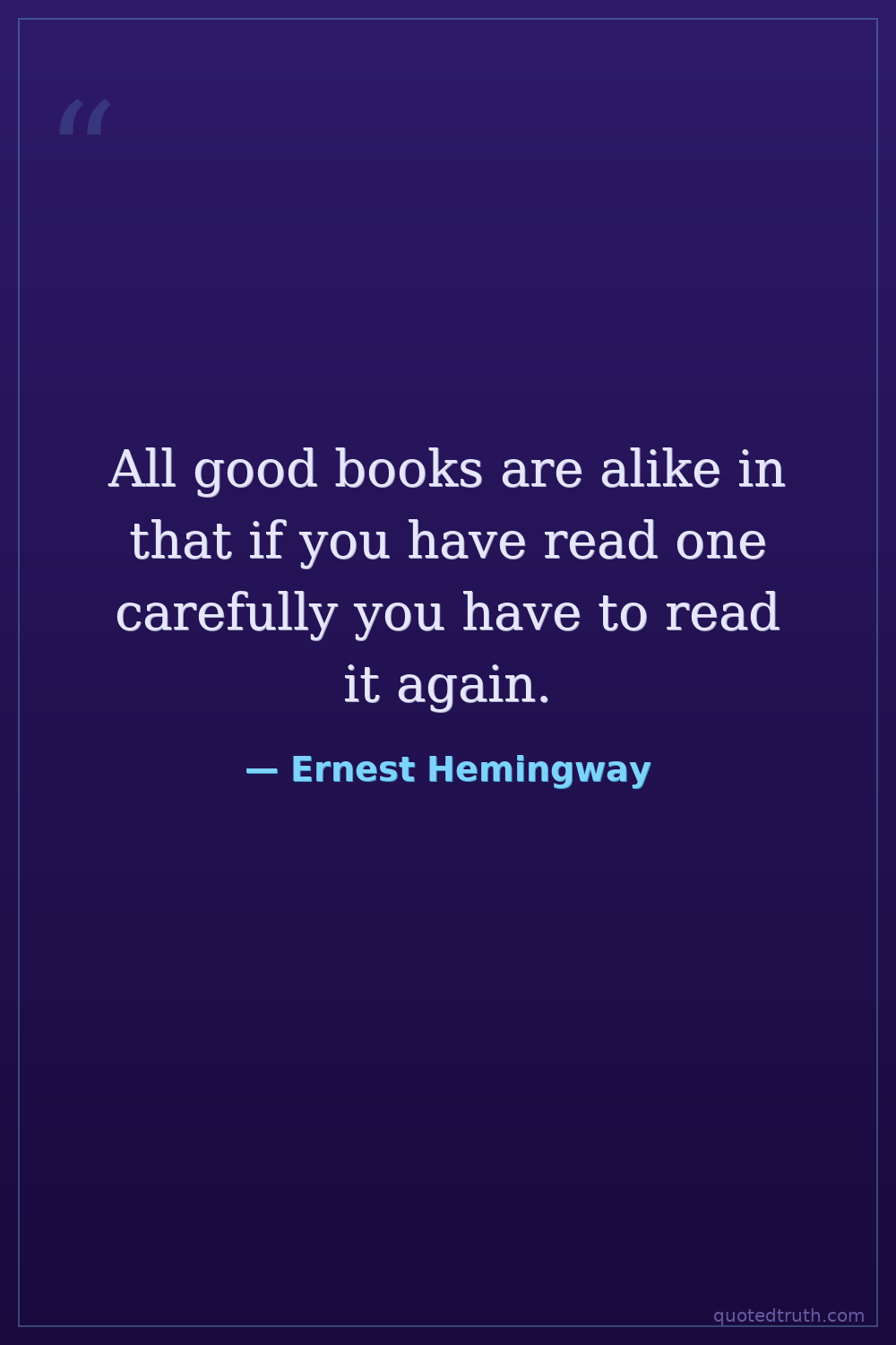 All good books are alike in that if you have read one carefully you have to read it again.
