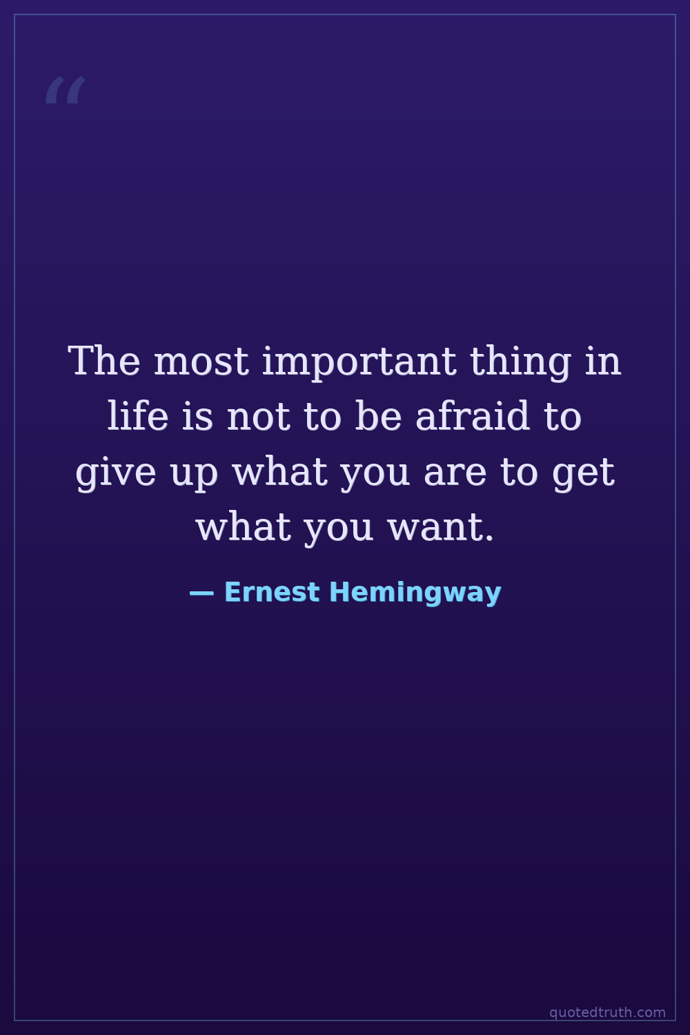 The most important thing in life is not to be afraid to give up what you are to get what you want.