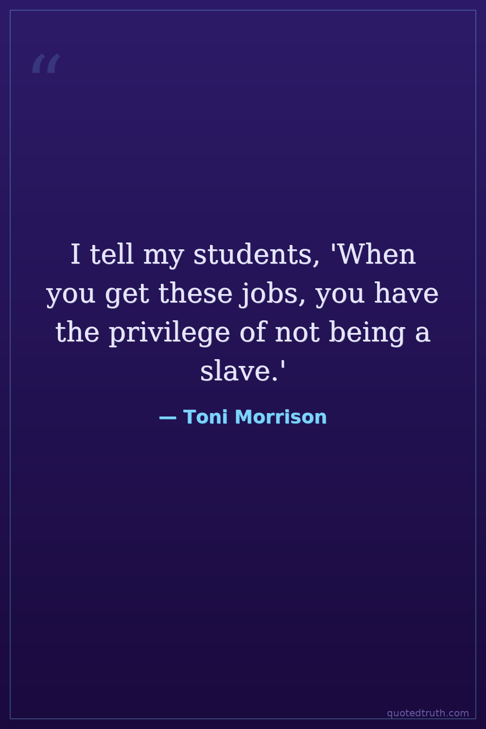 I tell my students, 'When you get these jobs, you have the privilege of not being a slave.'